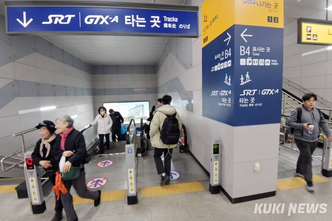 기자도 양어깨에 카메라를 둘러메고 수도권광역급행철도의 시승을 위해 30일 오전 9시 경 수서역에서 도착했다. 고속 열차 SRT의 출발역이기도 한 수서역에는 영문으로 SRT와 함께 GTX-A가 나란히 역사 곳곳에서 표시되어 차량 탑승을 안내했다. 개찰구에서 기존에 사용하던 교통카드를 이용해 통과 후 플랫폼에 도착하니 이미 많은 승객과 ‘열차 덕후’들이 열차가 진입하기를 기다리며 신기한 듯 곳곳을 사진에 담고 있었다.